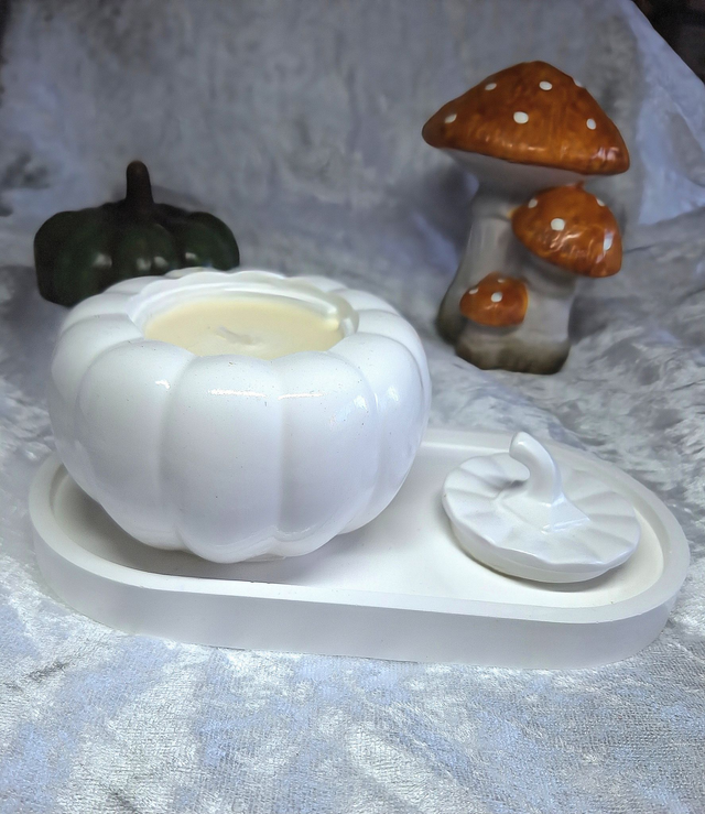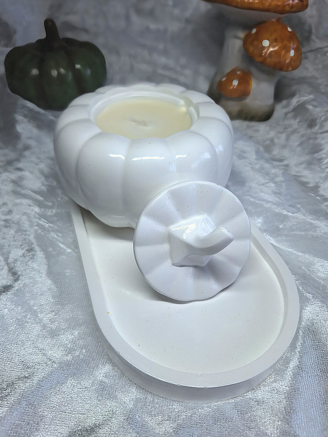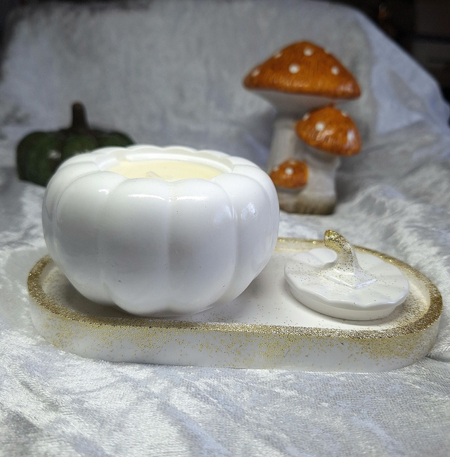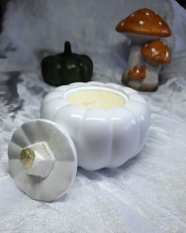 Une touche d'automne magique! Découvrez nos citrouilles en céramiques faites a la main, abritant des bougies aux parfums envoûtants. Laissez vous séduire par la douceur de citrouille blanche ambrée, l'atmosphère mystérieuse de l'heure des sorcières, ou les notes enivrantes de Dance des vampires. Parfaites pour une ambiance d'Halloween chic et feutrée! Accompagnées de son petit plateau ou seule, a votre convenance.