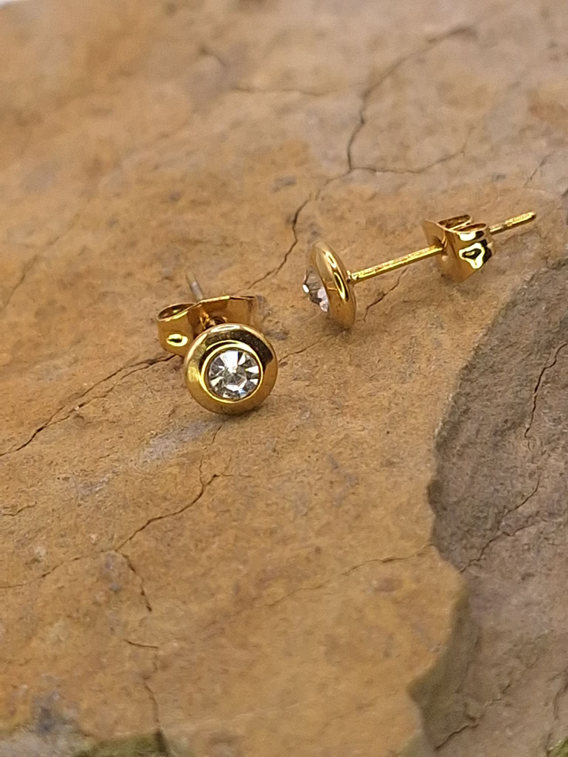 Petites puces d'oreilles dorées et oxyde de zirconium.