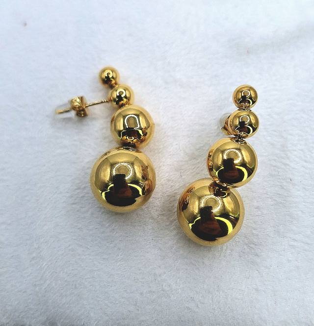 - Design Gradué : Une succession de quatre sphères dorées de tailles croissantes, créant un effet de cascade moderne et dynamique.
