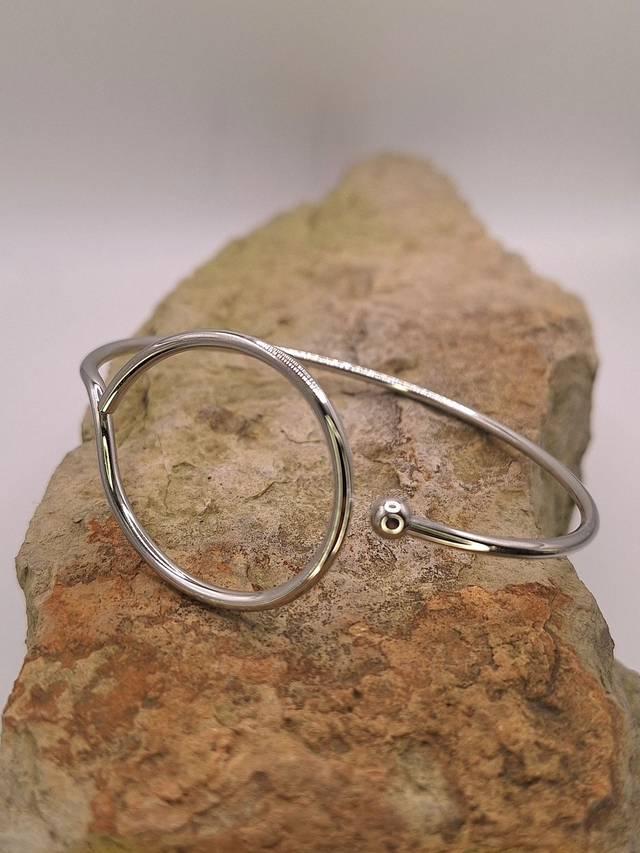 Bracelet argenté jonc cercle ouvert et boule ajustable