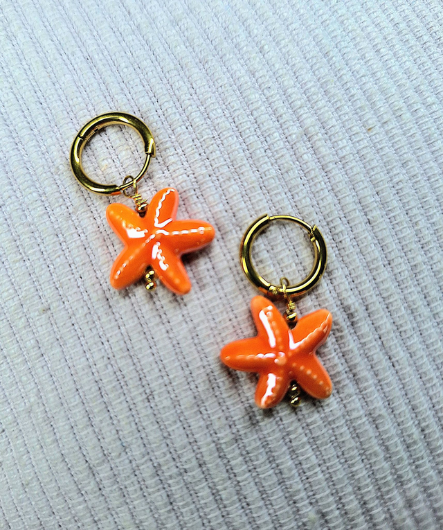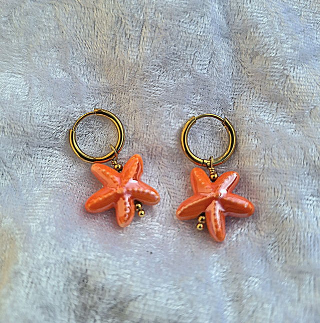- Pampilles en Céramique : Chaque anneau suspend une étoile de mer en céramique d'un orange vif et brillant, offrant un fini laqué irrésistible.