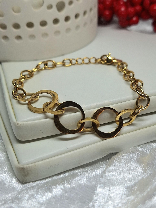 Bracelet chaine doré avec trois gros maillons en son centre.