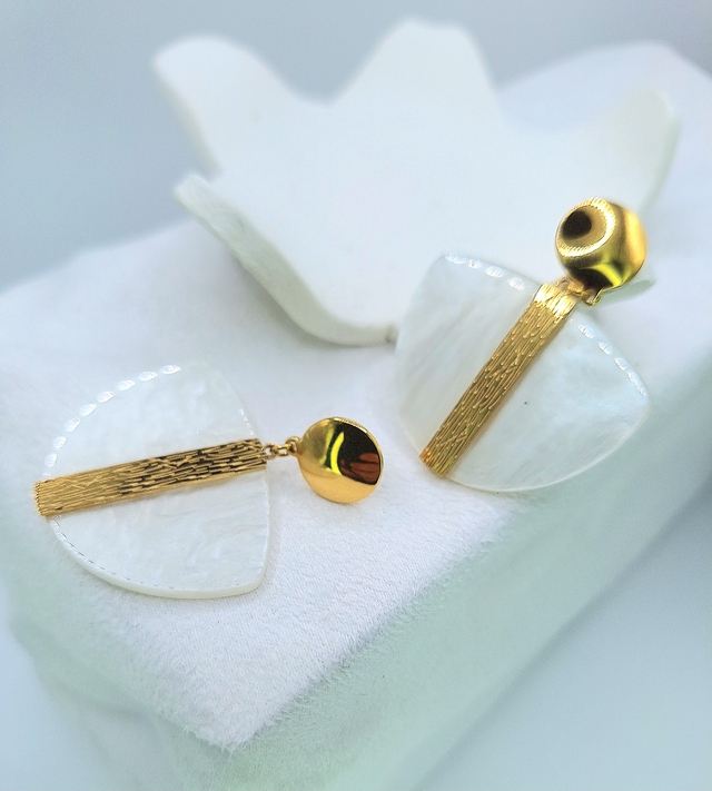 Boucles d'Oreilles Avec Ligne Dorée Pendentifs Résine Acrylique Blanche
