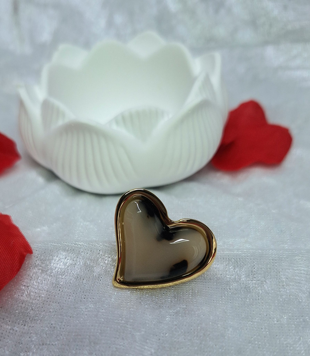 Un large cœur au fini lisse, orné d'un motif effet écaillé aux nuances ambrées et noires, pour un look rétro-chic irrésistible.