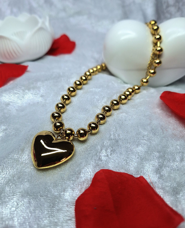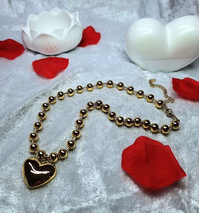 L'audace au service du romantisme. Affirmez votre féminité avec ce collier "Cœur de Glamour", une pièce maîtresse qui allie modernité et élégance intemporelle. Conçu en acier inoxydable doré de haute qualité, ce bijou se compose d'une chaîne de billes métalliques robustes, offrant un éclat miroir irrésistible qui ne ternit jamais et d'un large pendentif cœur bombé et poli qui capte la lumière sous tous les angles. Muni d'une chaînette d'extension pour s'adapter à toutes vos envies (ras-du-cou ou porté plus long).