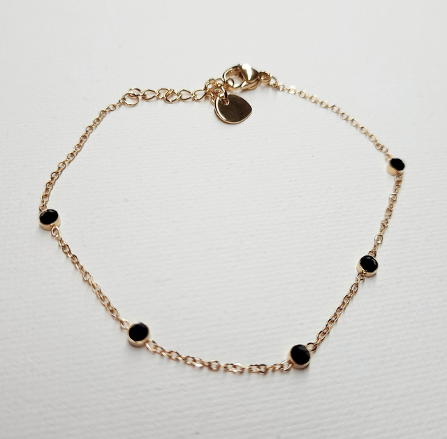 Bracelet fine chaîne et petites pierre noire.
