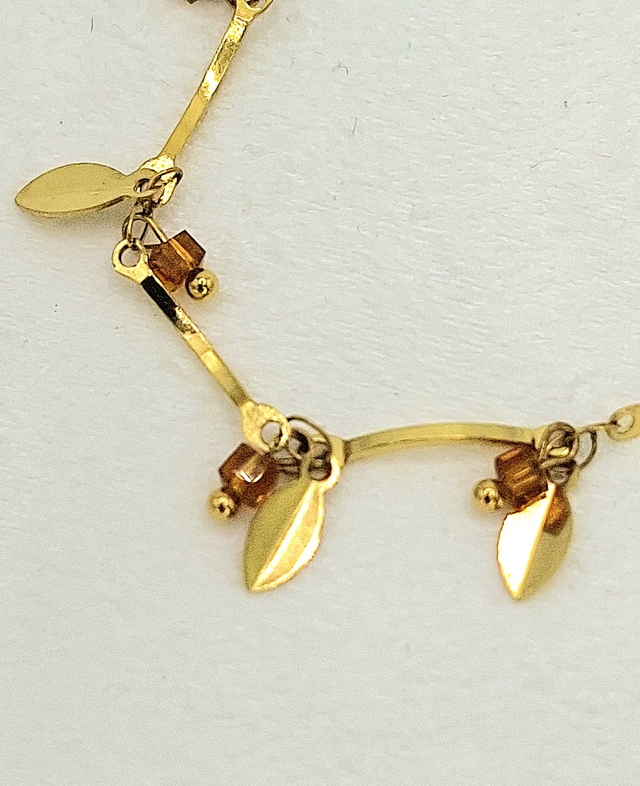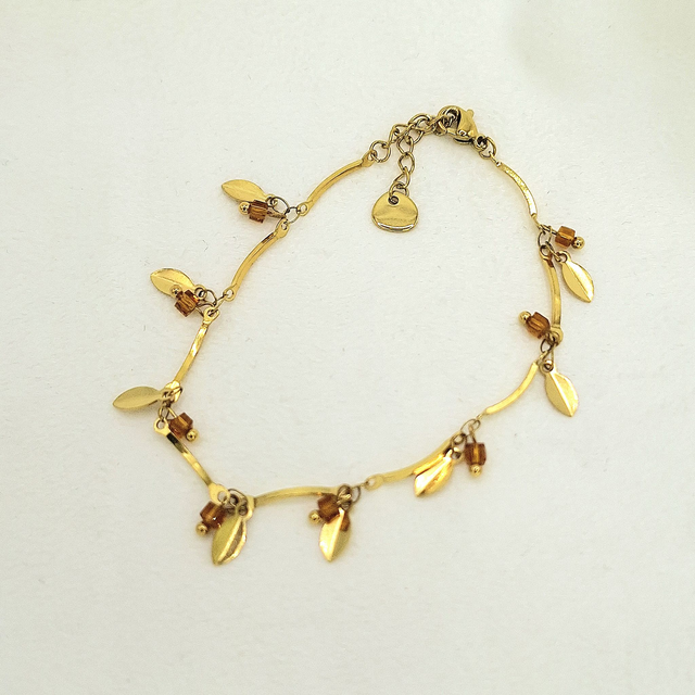 Bracelet doré petites feuilles et breloques perles.