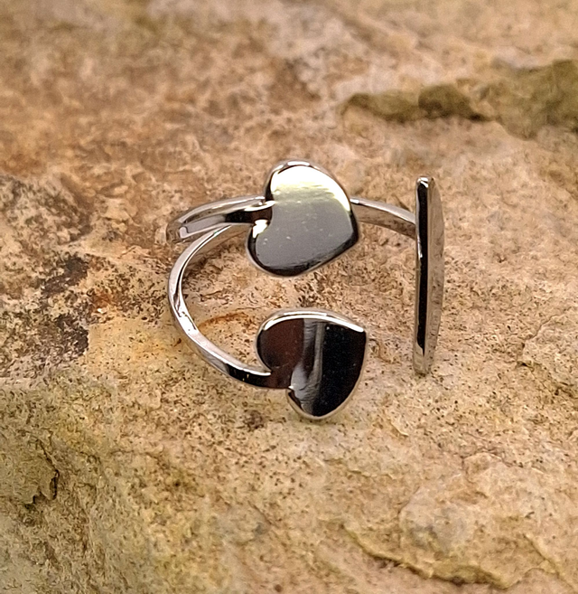 Cette bague ajustable se distingue par son anneau ouvert original, mettant en scène deux cœurs lisses qui font face à une barre géométrique épurée. Fabriquée en acier inoxydable, elle résiste à la vie quotidienne sans perdre son éclat. Son format réglable permet de la porter sur n'importe quel doigt ou de l'offrir sans crainte de se tromper de taille. Un cadeau idéal pour symboliser un lien précieux.
