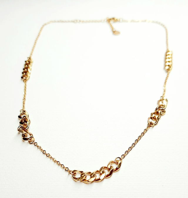 Collier ras de cou en alternance de petite et grosse chaîne.