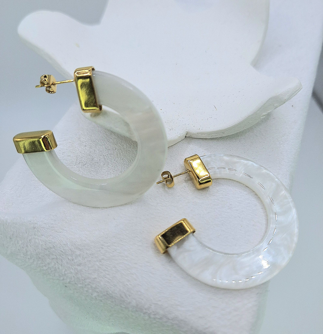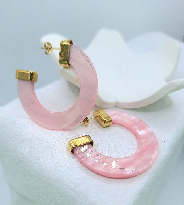 Boucles d'Oreilles Créoles Dorées Demi Cercle Résine .