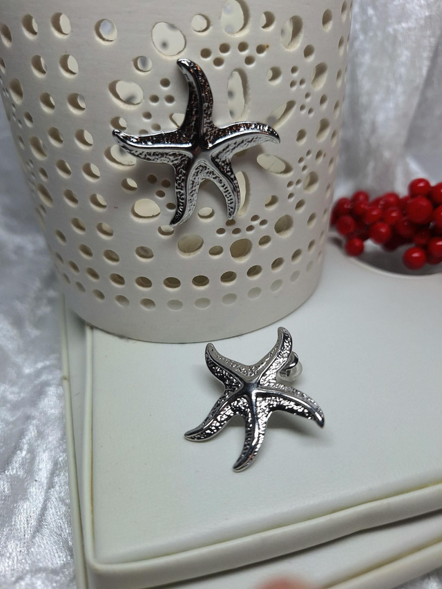 Boucles d'oreille argentées forme étoile de mer.