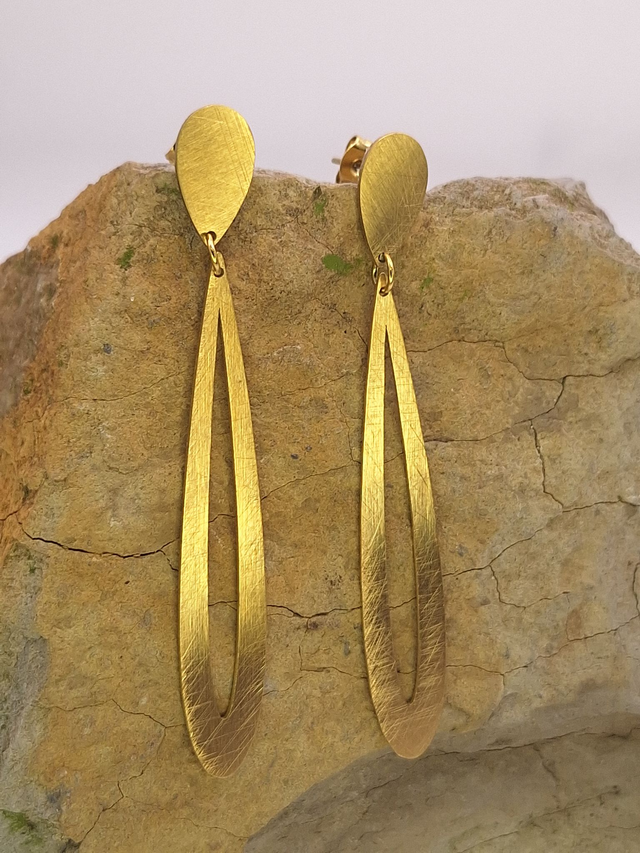Boucles d'oreilles dorées forme gouttes, aspect brossée.