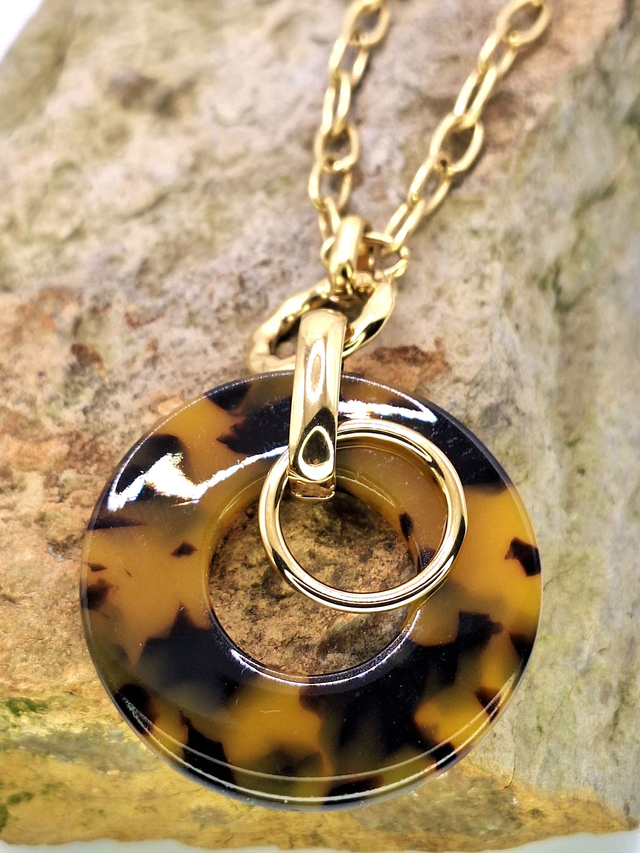 Collier chaîne dorée avec cercle motif animalier Léopard.