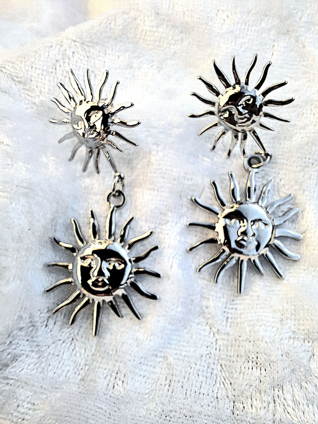 Illuminez votre visage avec ces boucles d'oreilles soleil éclatantes! De couleur argentée, elles arborent un délicat visage au centre du soleil, ajoutant une touche d'originalité et de gaieté a votre style.