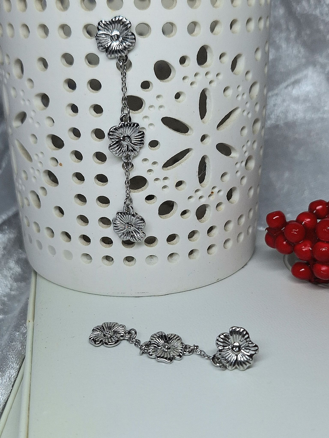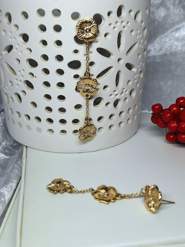 - Design en Cascade : Un trio de fleurs finement ciselées s'enchaîne le long d'une fine chaîne dorée, créant un mouvement fluide et gracieux.