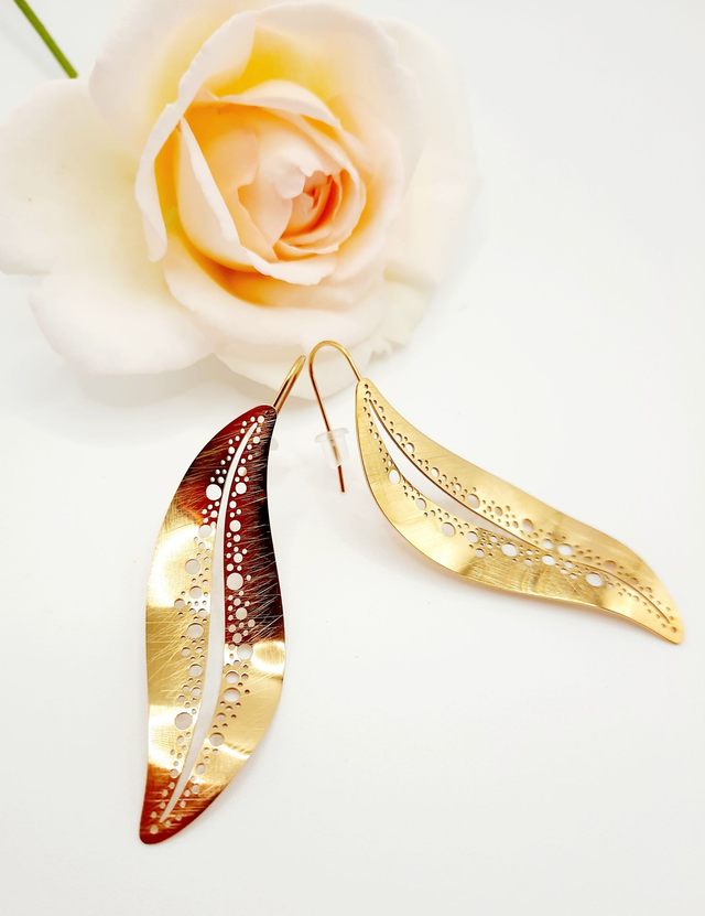 - Design Aérien : Une forme de feuille longue et ondulée, agrémentée de délicates perforations ajourées pour un effet dentelle métallique.